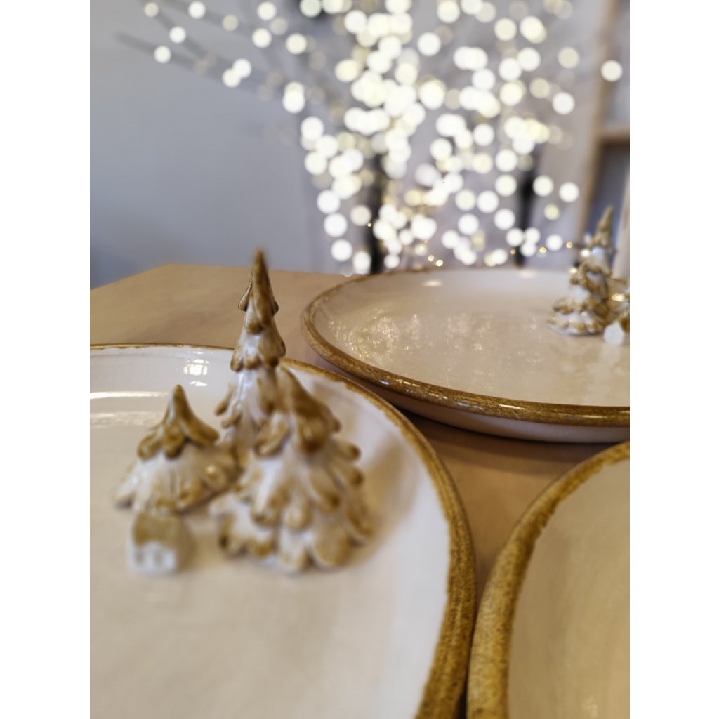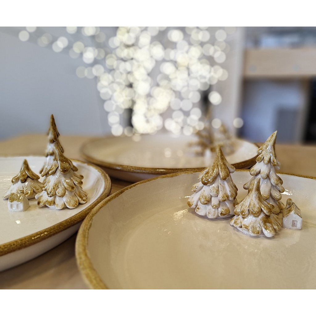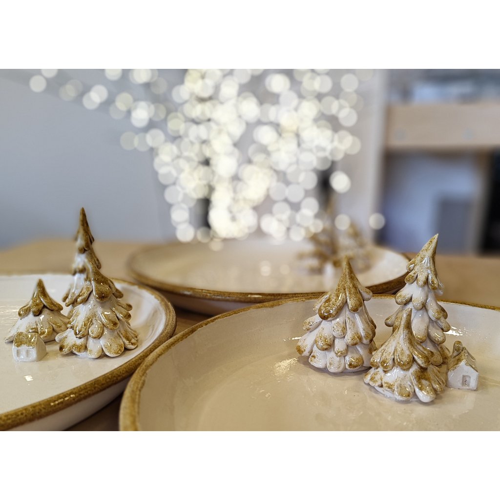 ✨ Kézműves elegancia: A finoman megformált fenyők és a letisztult, fehér-arany árnyalatok egyszerre elegánsak és meghittek.