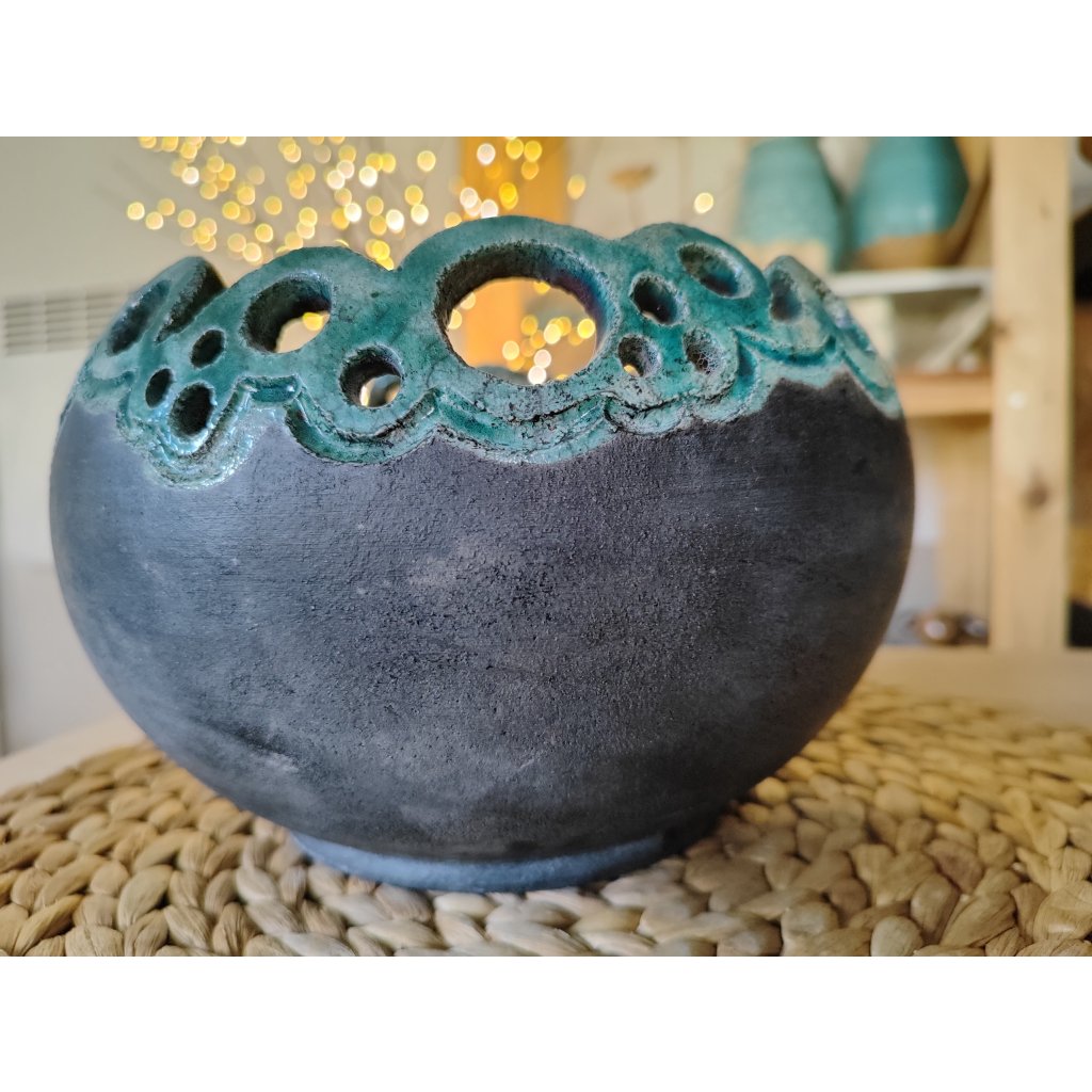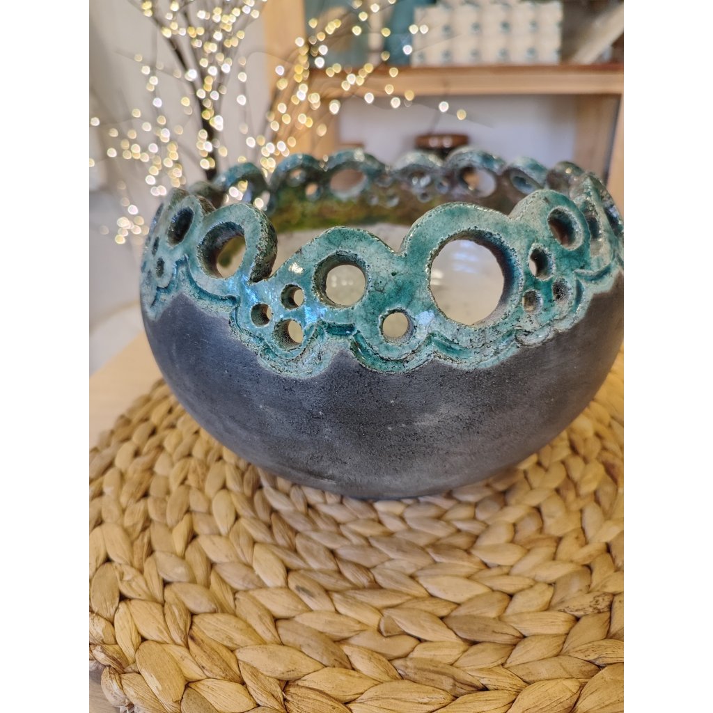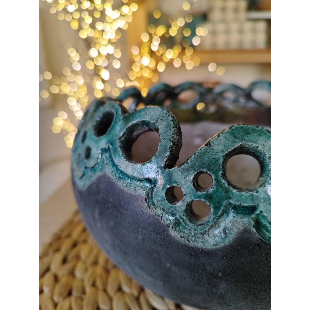 Ez a gyönyörű fekete-türkiz raku kínáló tál egyedi és modern megjelenésével bármilyen étkezést feldob. Kézzel készült, a raku technika különleges égetési folyamatának köszönhetően minden darab egyedi és megismételhetetlen.
