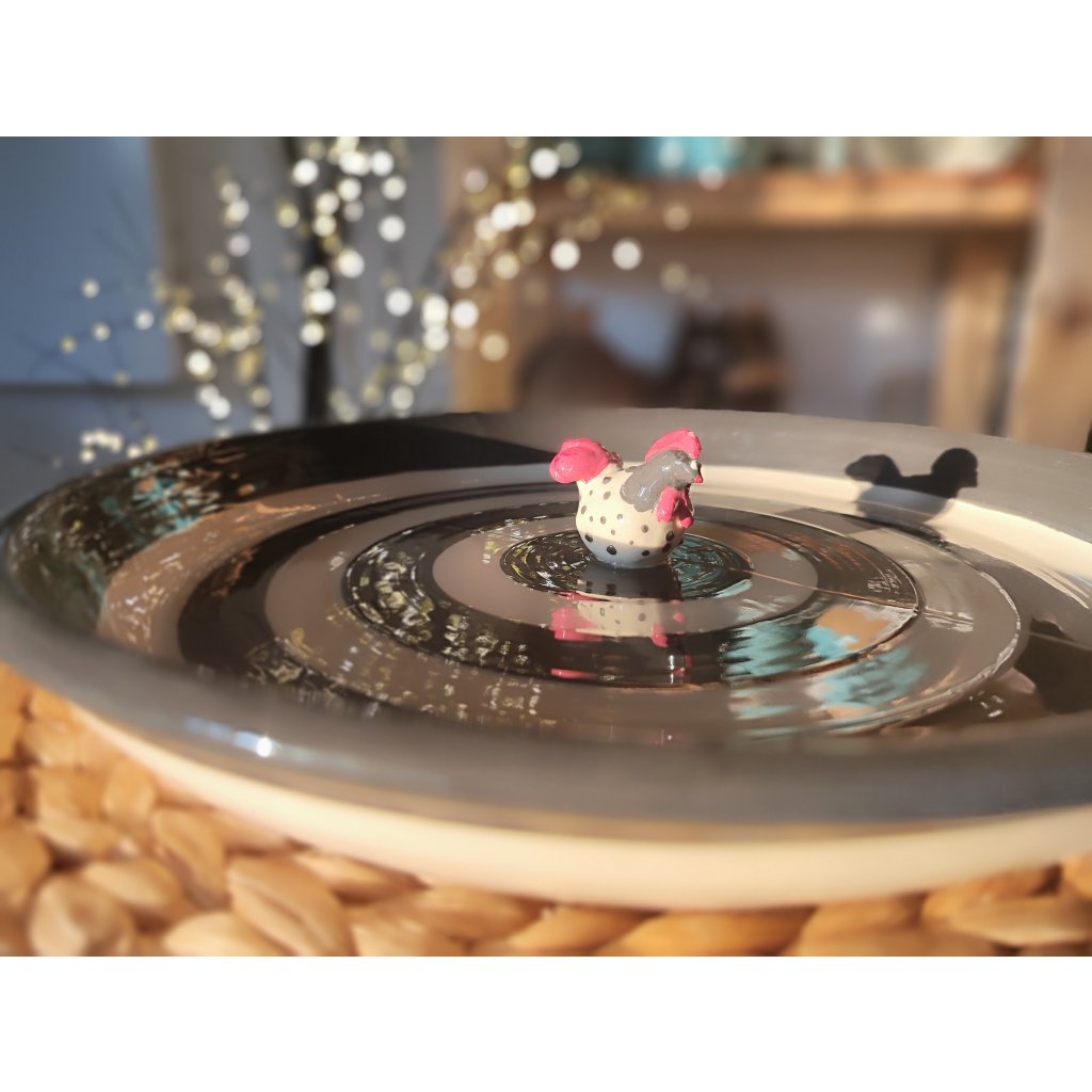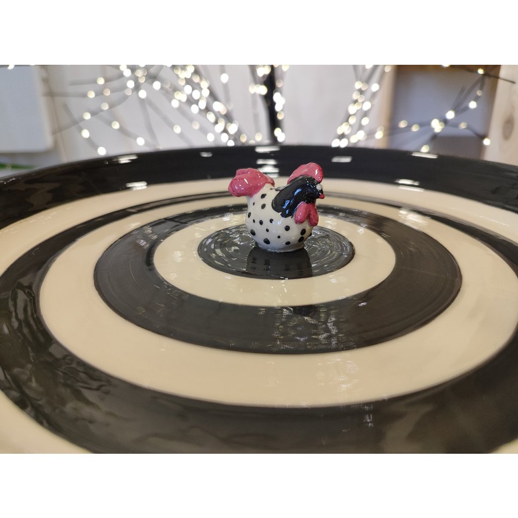 Ez a kézzel készült kerámia tálaló igazi gyöngyszem, amely minden étkezést feldob. Az aranyos csirkés dizájnja vidámságot és játékosságot visz az asztalra, tökéletes választás családi összejövetelekhez, baráti találkozókhoz, vagy a húsvéti asztalra.