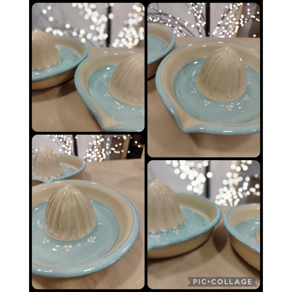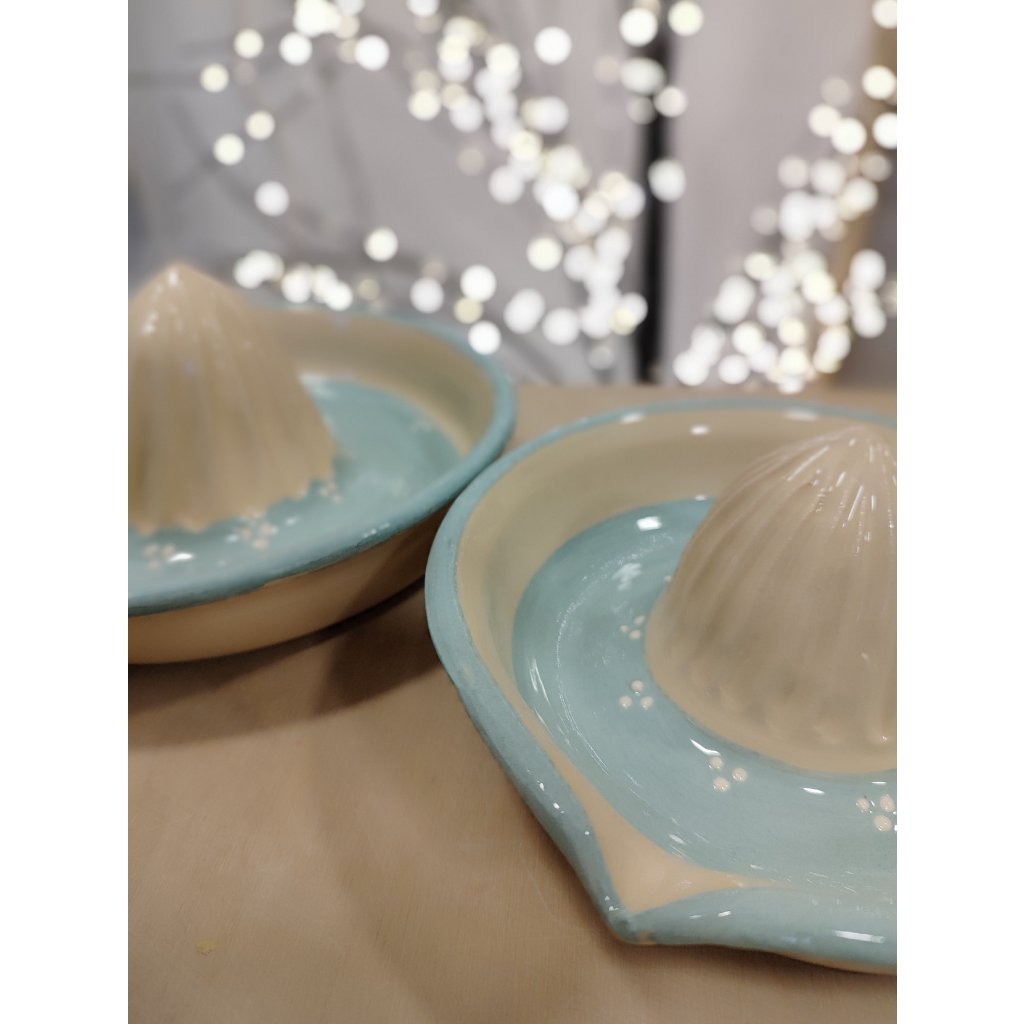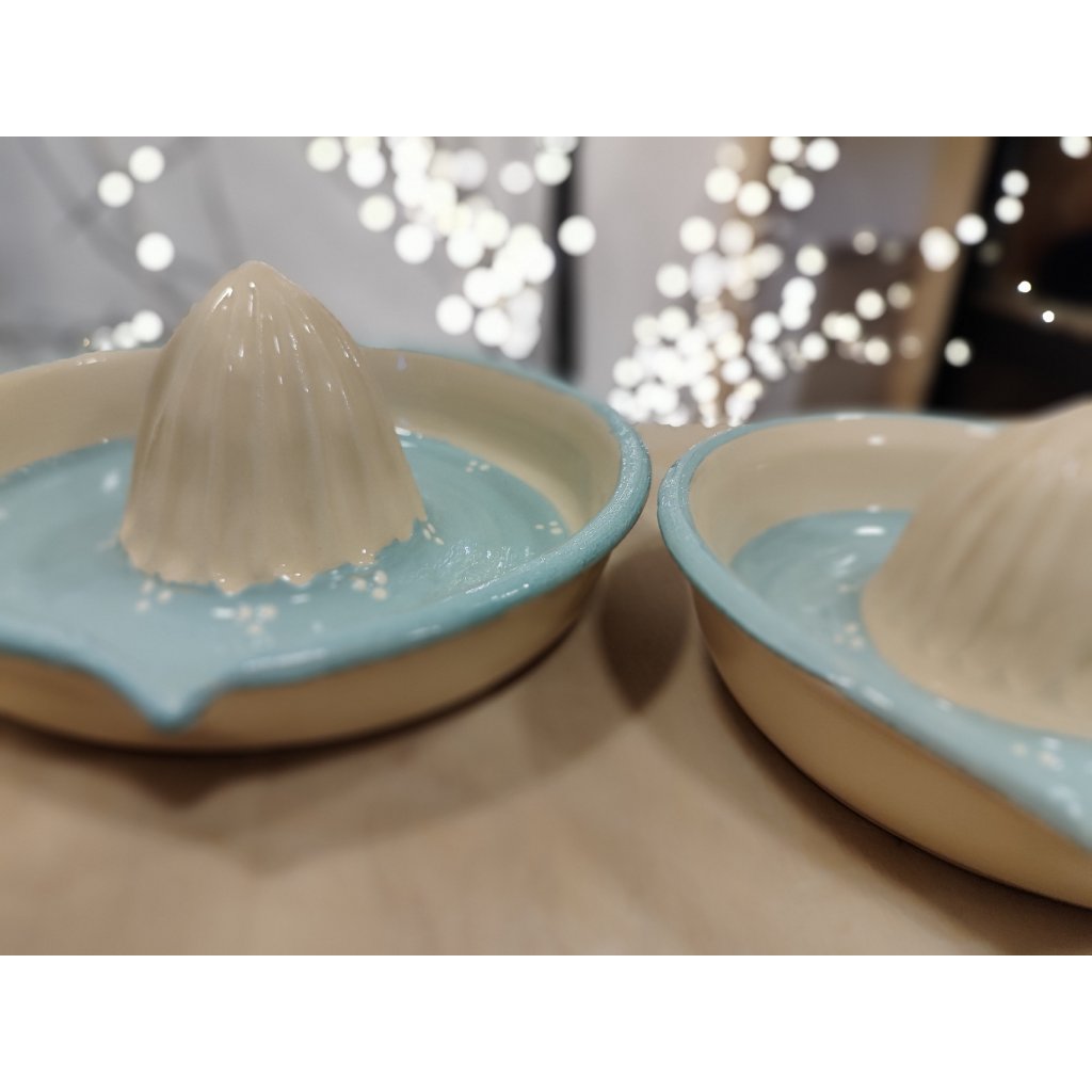 Ez a kerámia citromfacsaró nemcsak szemet gyönyörködtető, hanem tökéletes társ a reggeli limonádéhoz, a salátaöntetekhez vagy egy frissítő koktélhoz. A tengerkék máz és a természetes kerámia találkozása egyszerre vidám és elegáns – pont, ahogy a frissen facsart citrusok íze!