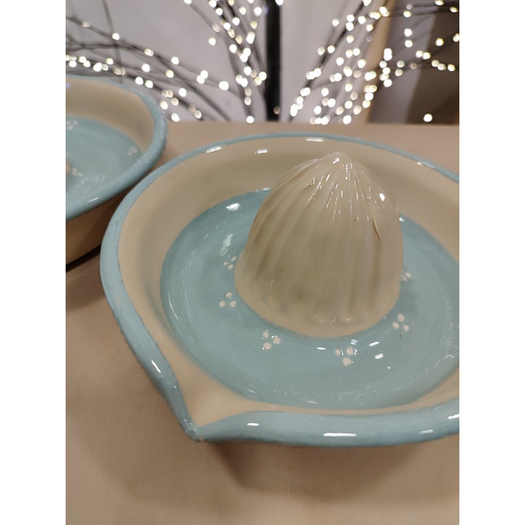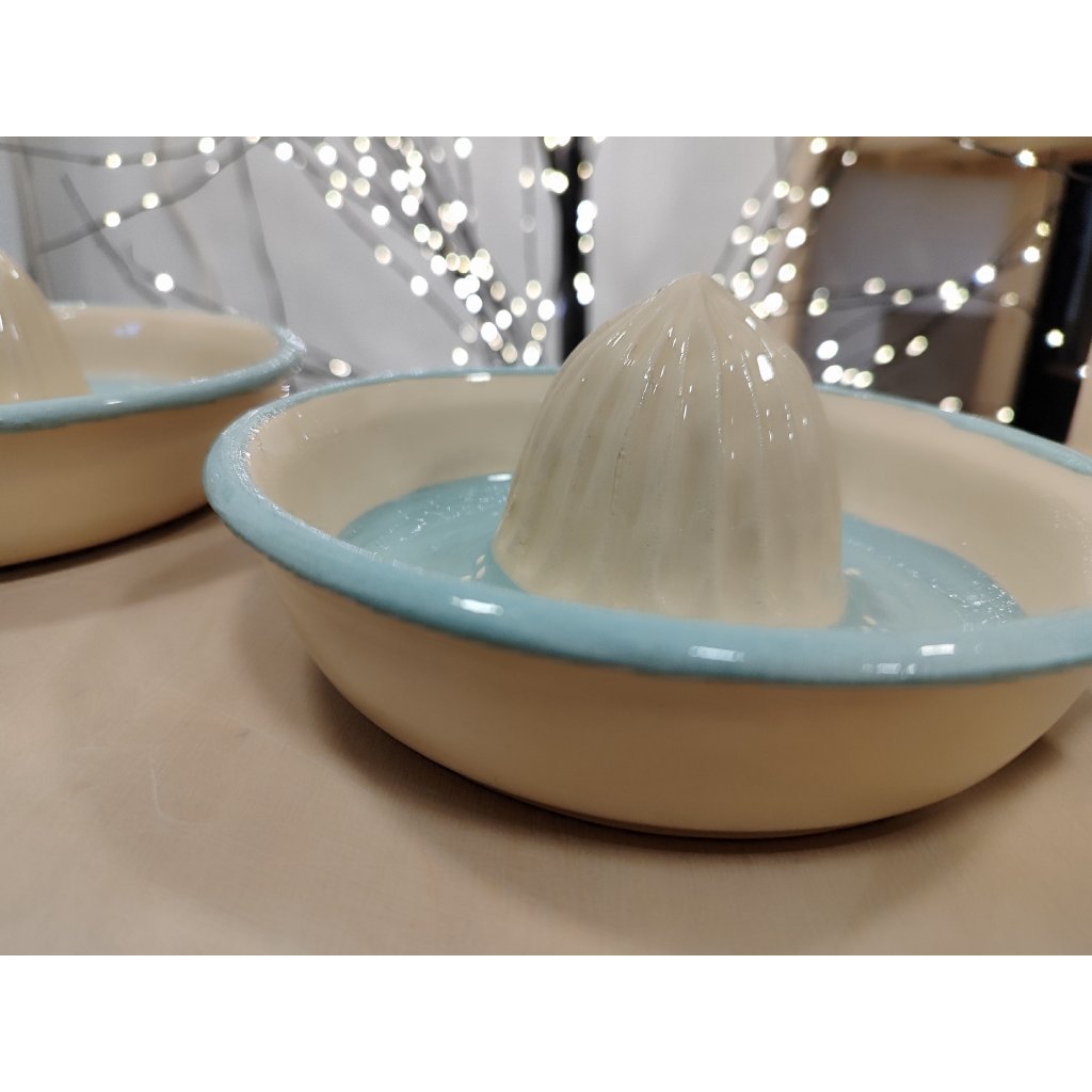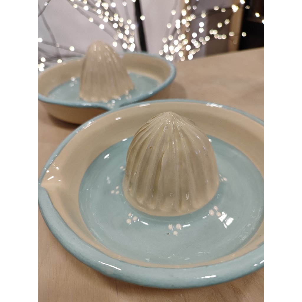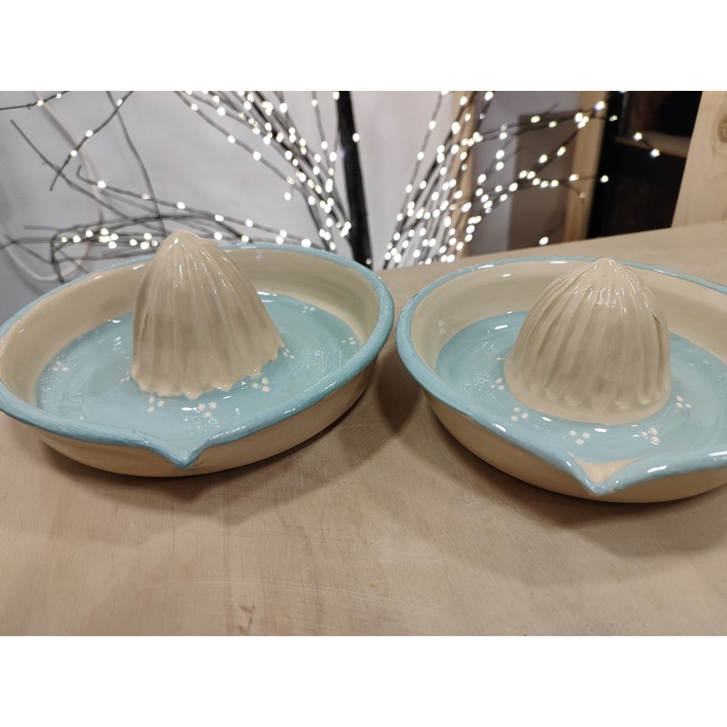 Ez a kerámia citromfacsaró nemcsak szemet gyönyörködtető, hanem tökéletes társ a reggeli limonádéhoz, a salátaöntetekhez vagy egy frissítő koktélhoz. A tengerkék máz és a természetes kerámia találkozása egyszerre vidám és elegáns – pont, ahogy a frissen facsart citrusok íze!