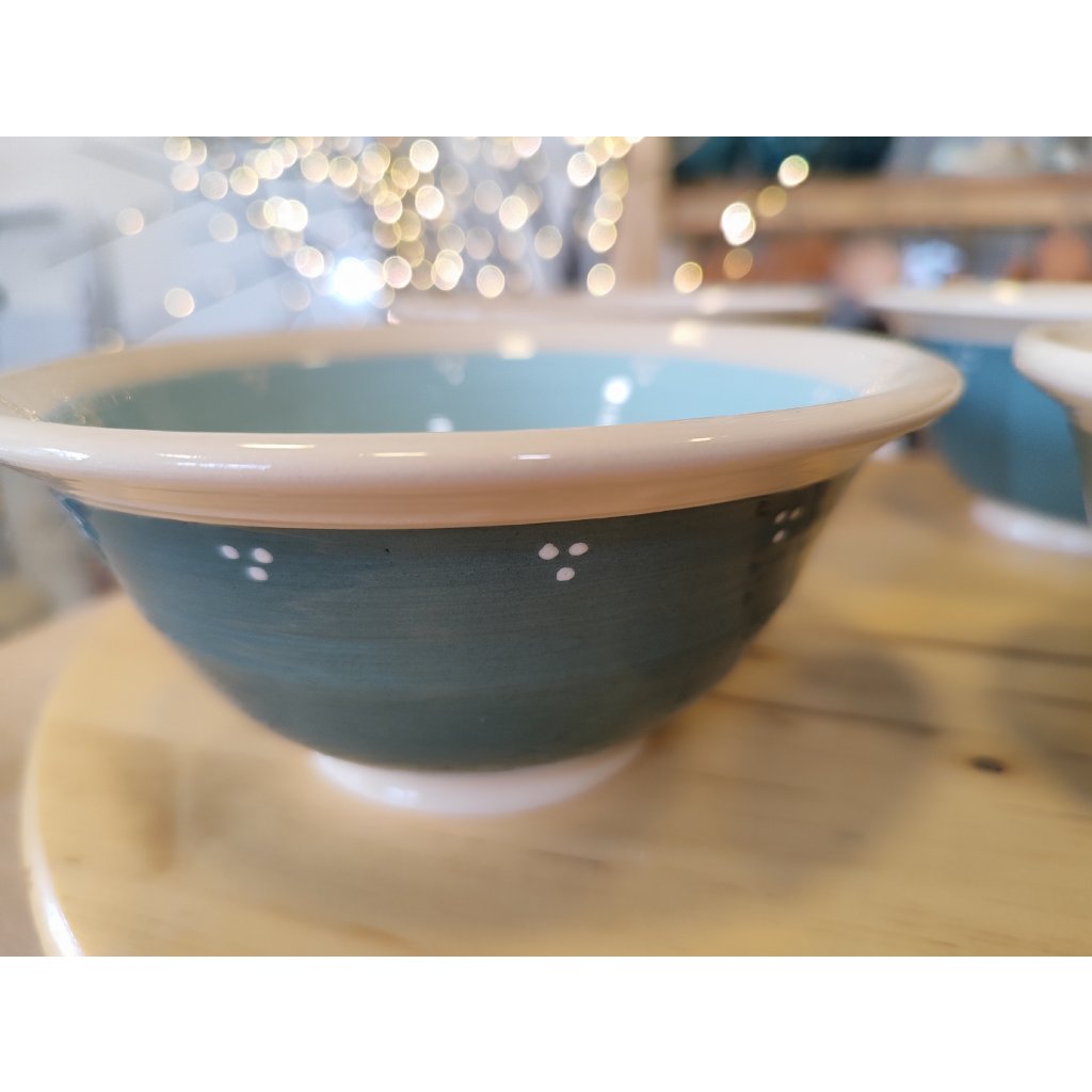 Csempészd be a rusztikus elegancia varázsát az étkeződbe ezzel a sötét és világoskék, apró pöttyös műzlis tálkával! Az alacsony tüzű égetés során megalkotott kerámia egyedülálló textúrája és a finom pöttyözés bájos, mégis letisztult megjelenést kölcsönöz.