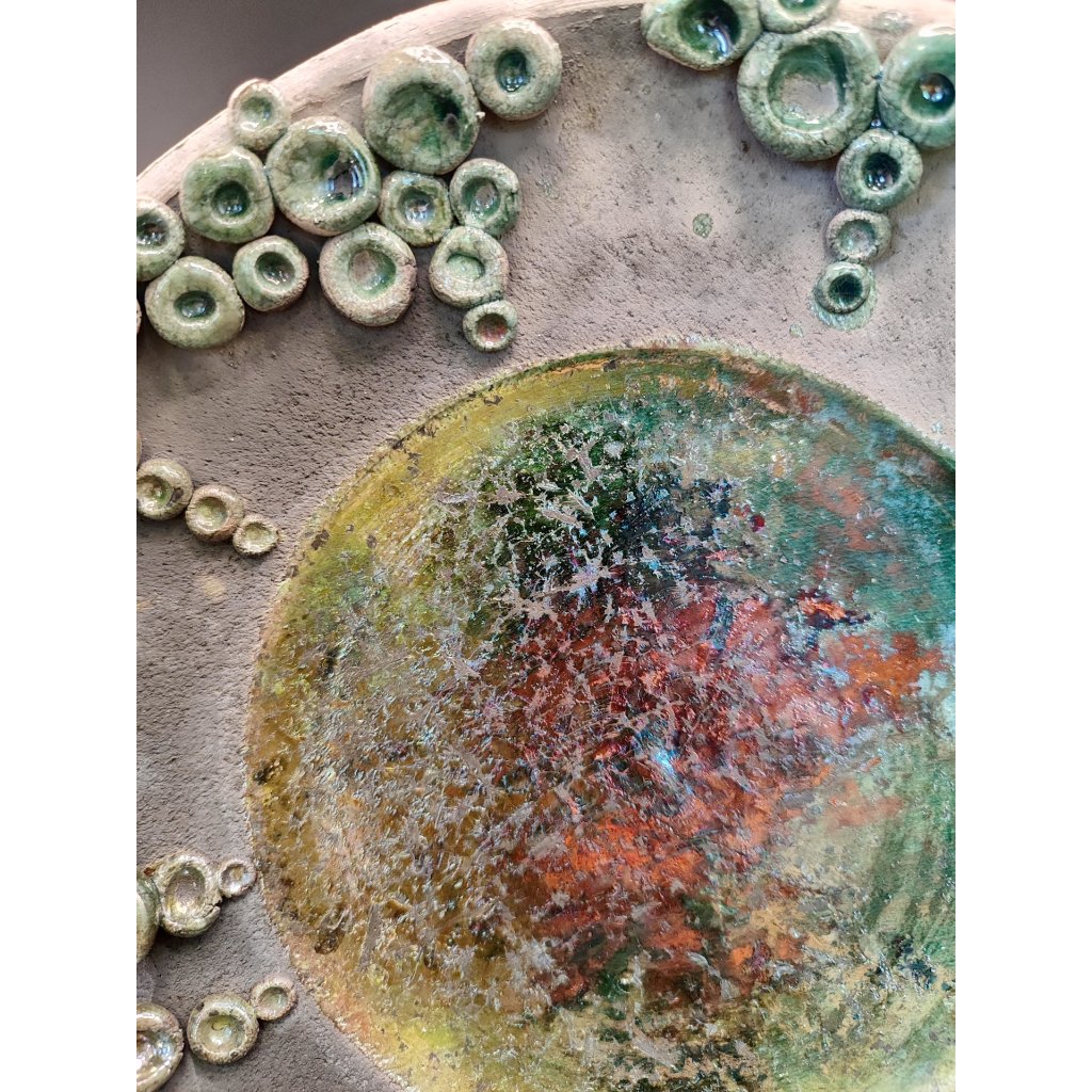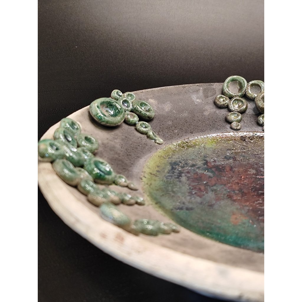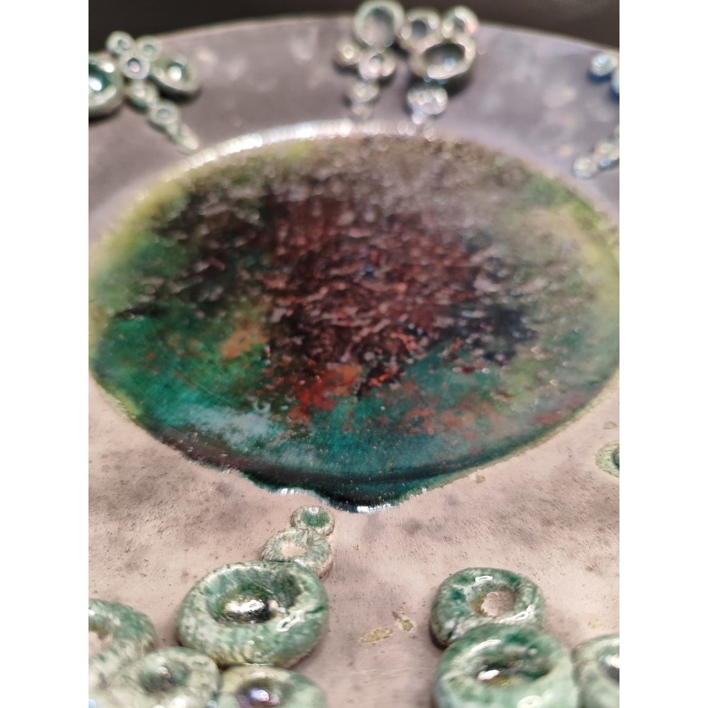 - Anyag: raku égetési technikával készült tál