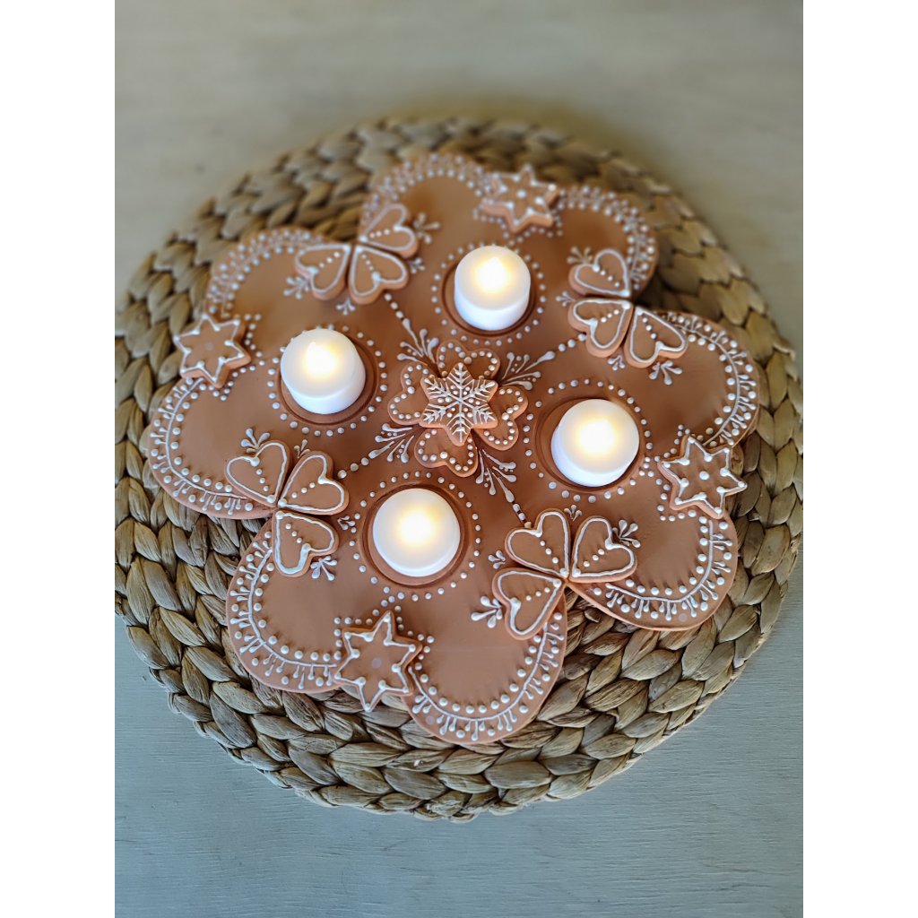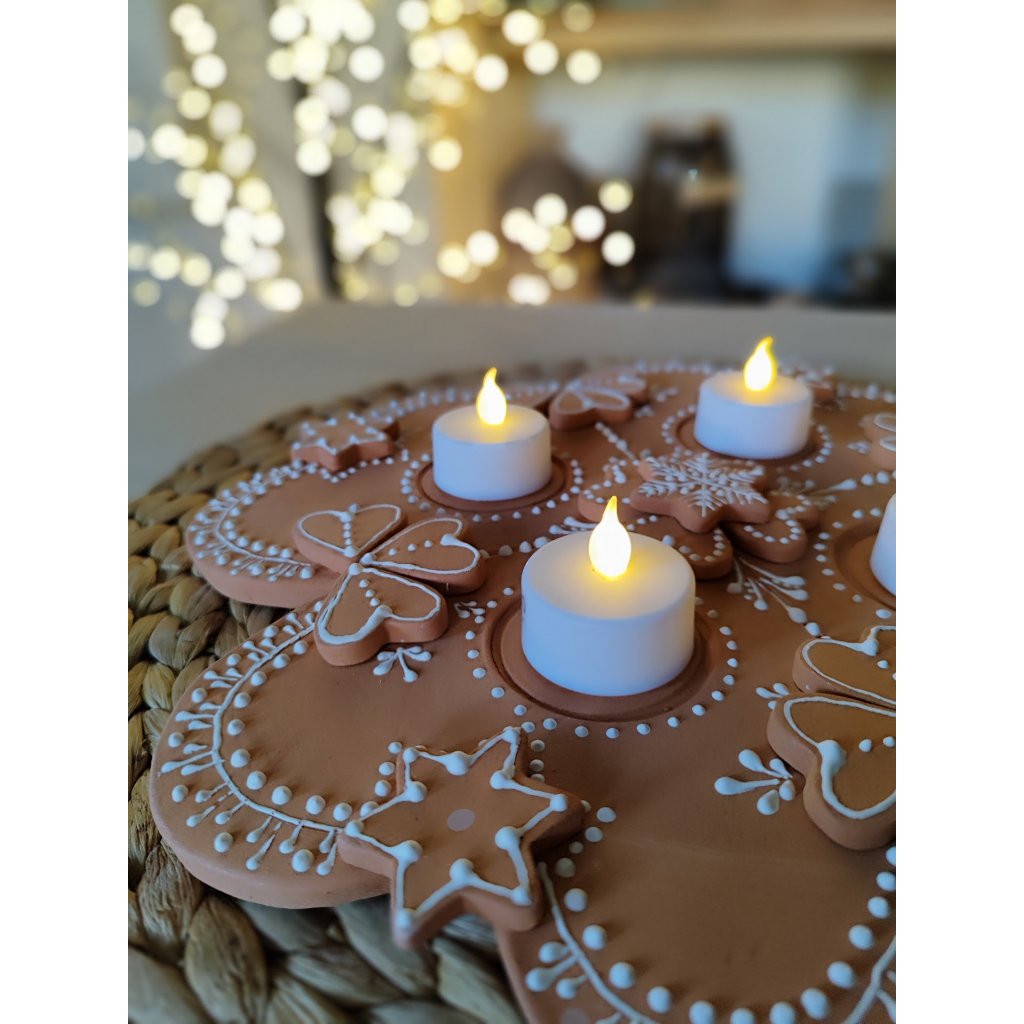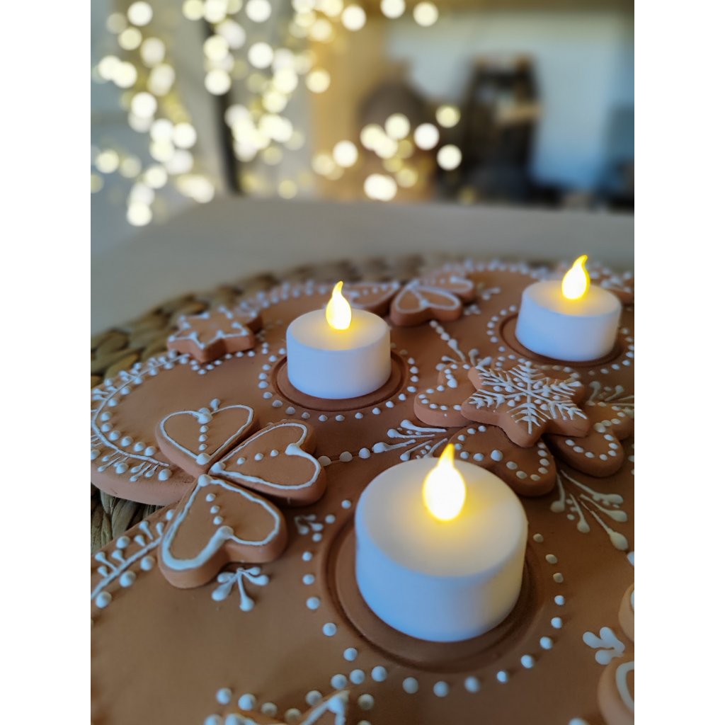 Ez a gyönyörű terrakotta adventi gyertyatartó tökéletes kiegészítője az ünnepi készülődésnek. Kézműves kivitelezése és meleg színei varázslatos hangulatot teremtenek, amely feldobja az otthonodat a karácsonyi időszakban.