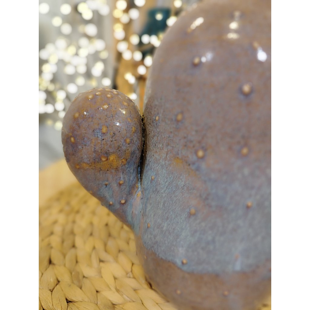 Ez a Flamingo mázzal készült, 21 cm magas kaktusz maga a színek kavalkádja! A rózsaszín, lila és halványkék lágy átmenetei a fehér agyagon úgy ragyognak, mint egy különleges hajnalpír – tökéletes választás mindazok számára, akik az időtálló szépséget keresik.